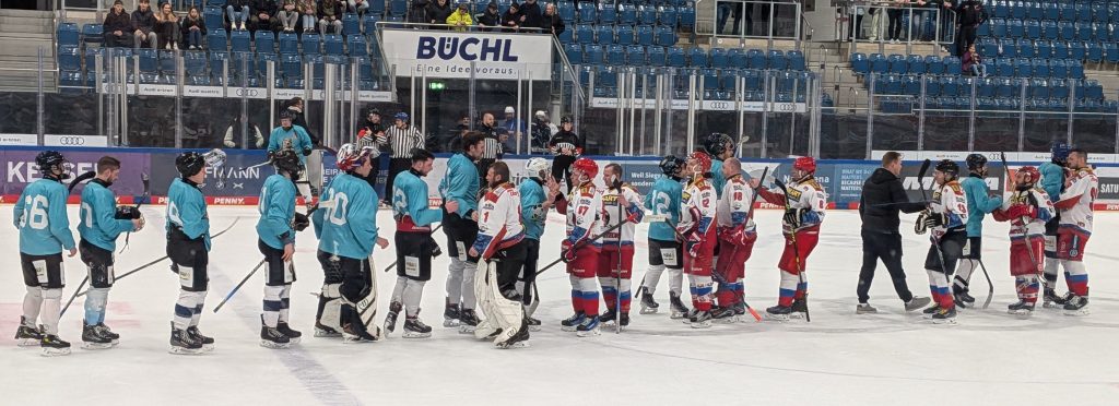 Im Anschluss blieb die Mannschaft noch in Nürnberg, um das Endspiel der zweiten Liga – hier unterlag Hauptrundensieger Gutmann Gladiators den Ice Sharks Weiden knapp mit 3:4 – sowie das DNHL 1 Finale gemeinsam anzusehen. Im Spitzenspiel des Tages, zwischen Rekordmeister Eisbären Lauf und der ersten Mannschaft der Nürnberg Knights, konnten letztere dank eines deutlichen 6:2 Erfolgs zum zweiten Mal in Folge den Schuhschrank-großen Pokal in die Höhe stemmen.