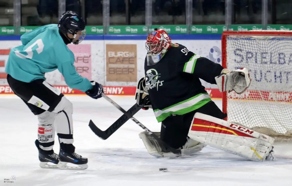 Nun waren alle Augen auf Jakob Gamperl im Tor der Grizzlys gerichtet. Der Marktredwitzer Spieler lief an, schoss und scheiterte an Gamperl, der damit den Halbfinal-Triumph seiner Mannschaft perfekt machte.